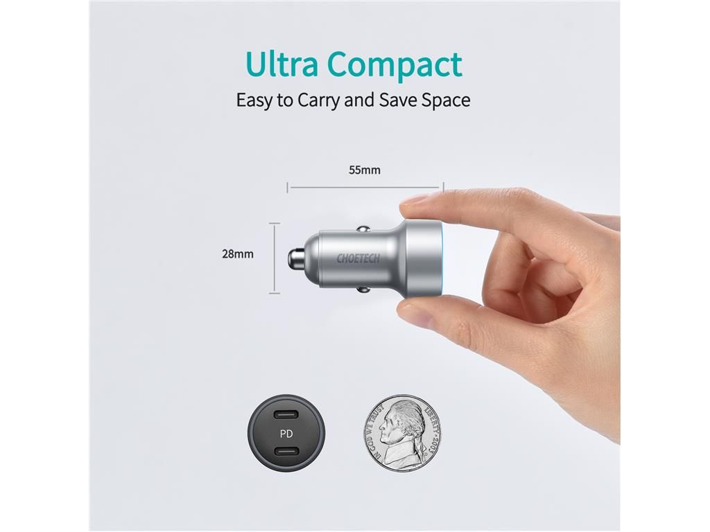 Incarcator auto 2x USB Type C PD 3.0 40W Choetech C0054-V2-SL.