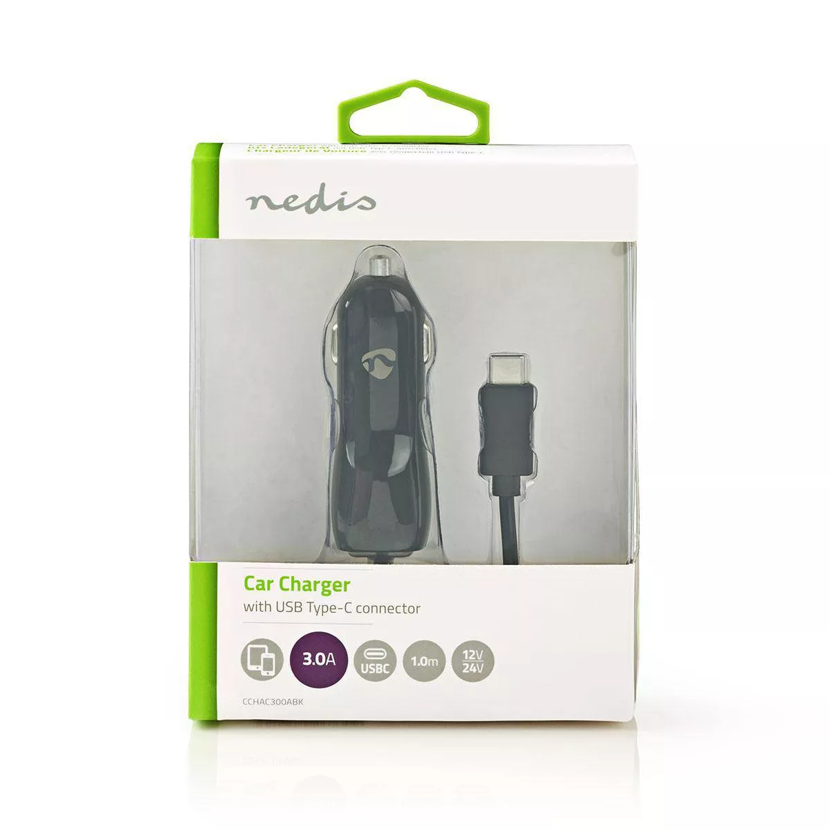 Incarcator auto USB Type C 3.0 A negru Nedis.