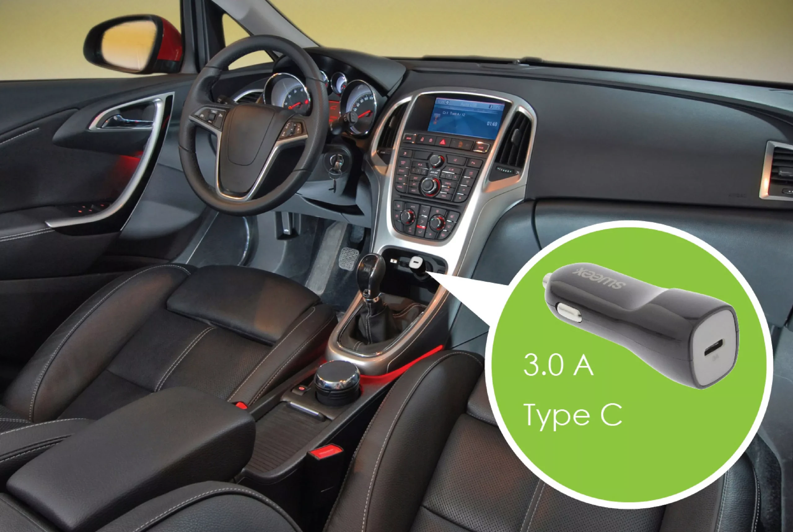 Incarcator auto USB Type C 3A alb Sweex