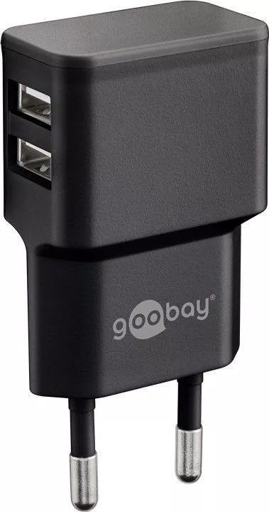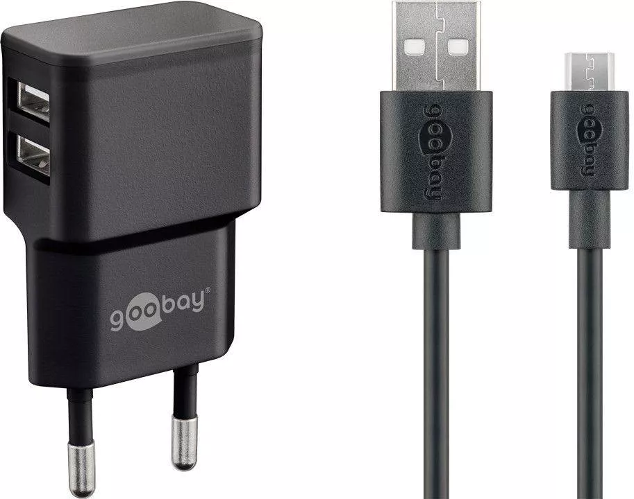 Incarcator de retea dual 2x USB cu cablu micro USB 2.4A negru Goobay