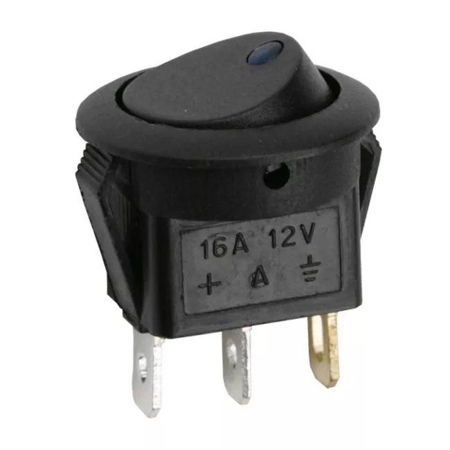 Interupator basculant 1 circuit 3 pini OFF-ON LED albastru 12V 16A cu retinere 09042KE