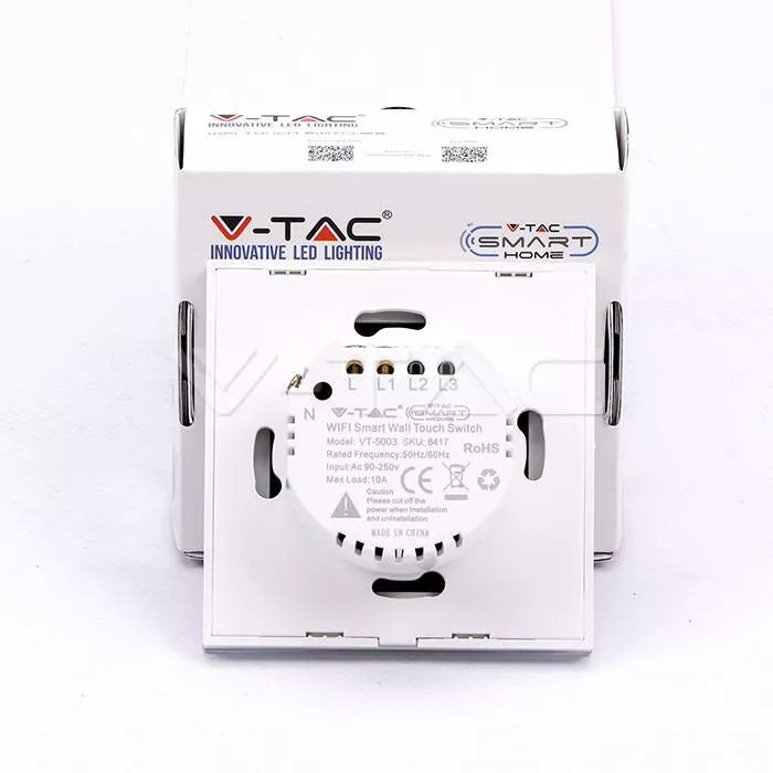 Intrerupator Smart SIMPLU din sticla cu atingere alb V-TAC.