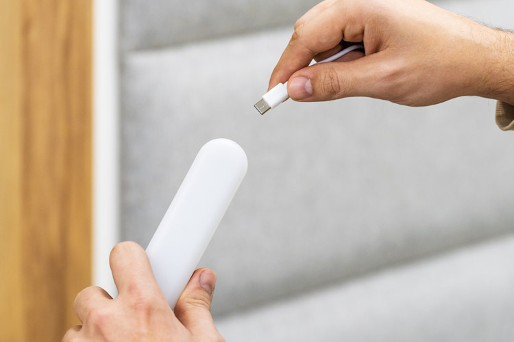 Avantajul lampii Rebel Light este faptul ca nu are nevoie de alimentare. Bateria de 800 mAh va face ca dispozitivul sa poata fi folosit foarte mult timp. O poti atasa pe peretele din garaj, langa scari sau sub dulapul de bucatarie. Cand bateria se descarca, trebuie doar sa conectezi bateria timp de doua ore la incarcator, iar lampa va fi din nou gata de utilizare.