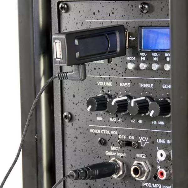 Receptorul este alimentat din portul USB si este conectat la intrarea echipamentului audio printr-un cablu cu mafa jack (adaptor jack 3.5 mm / 6.3 mm inclus).
