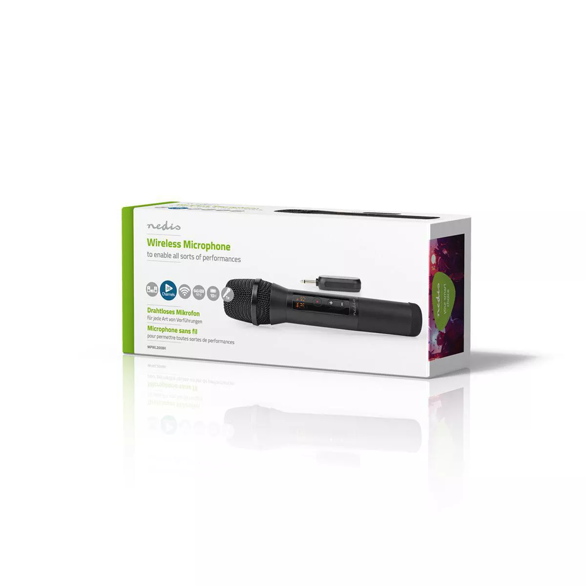 Microfon wireless Nedis, 20 de canale, 10 ore autonomie, receptor, negru.