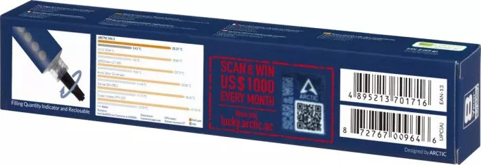 Compusul ARCTIC MX-2 este compus din micro-particule de carbon care duc la o conductivitate termică extrem de ridicată. Acesta garantează că căldura generată de procesor sau GPU este disipată rapid și eficient, chiar adecvată pentru overclockare. Super performant, MX-2 se situează printre compusul termic de top, pasta termică sau unsoarea termică de pe piață.
