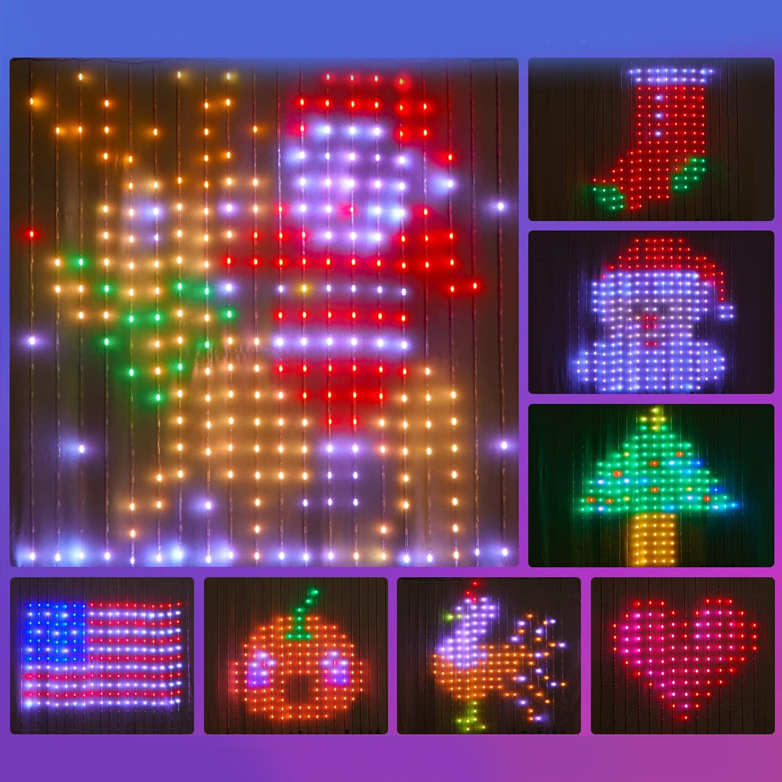 Cu aplicația mobilă cu o interfață ușor de utilizat, puteți colora și personaliza cu ușurință culoarea LED-urilor perdelei de lumină și chiar puteți crea desene individuale pentru perdeaua de lumină cu diferite culori pe care le puteți anima. Alegeți o culoare unică dintr-un spectru larg de culori sau setați unul dintre modurile de culoare predefinite pentru a crea o atmosferă cu adevărat atmosferică în casa dvs. Puteți alege efecte pâlpâitoare, pulsante lente sau gradient pentru a crea un spectacol de lumină unic și magic.