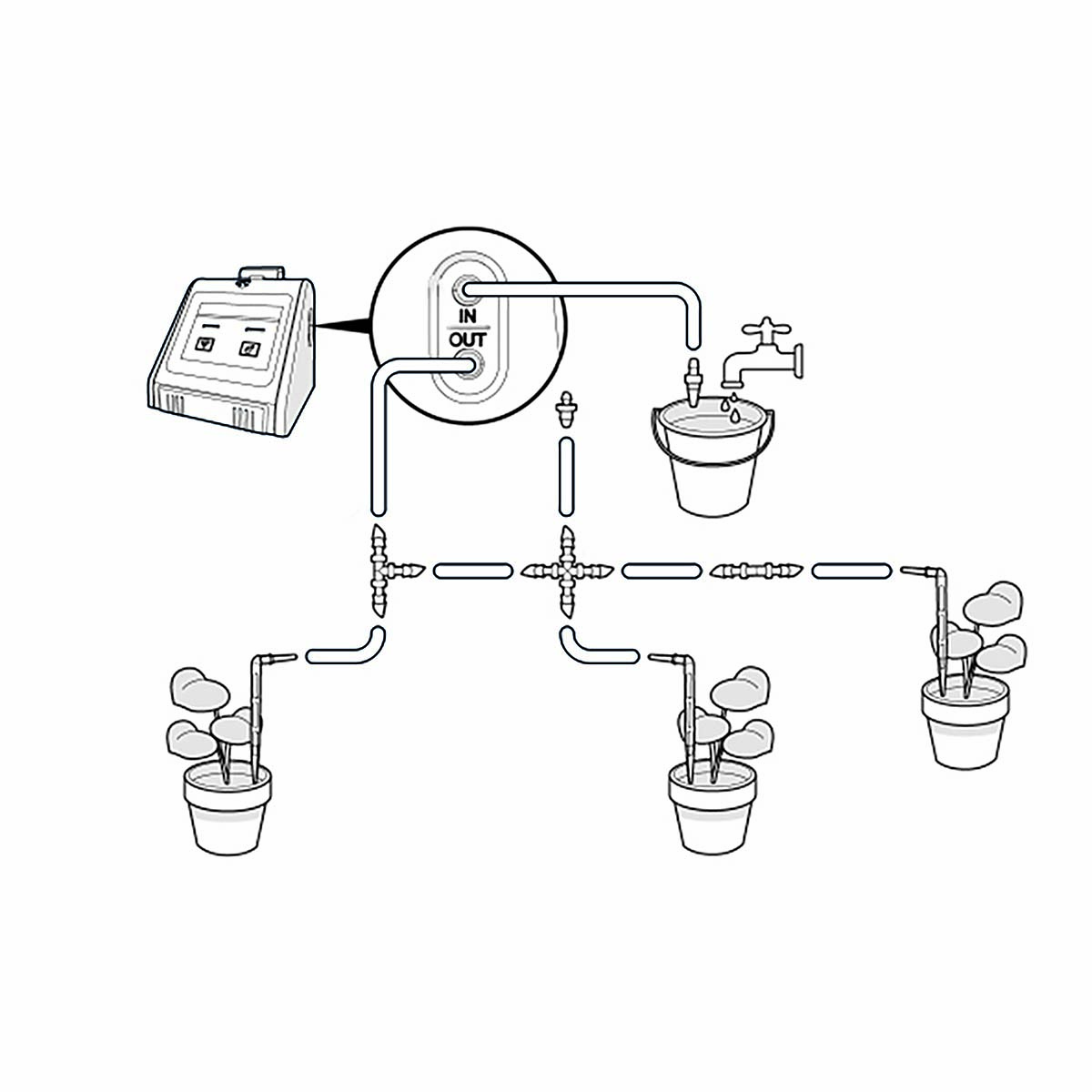 Amplasați pompa de apă Nedis SmartLife lângă instalațiile dvs., tăiați și folosiți tuburile de 10 metri incluse cu toate accesoriile sale pentru a ajunge la toate plantele necesare, precum și la un recipient de apă la alegere: găleată, sticlă sau cană de udare.