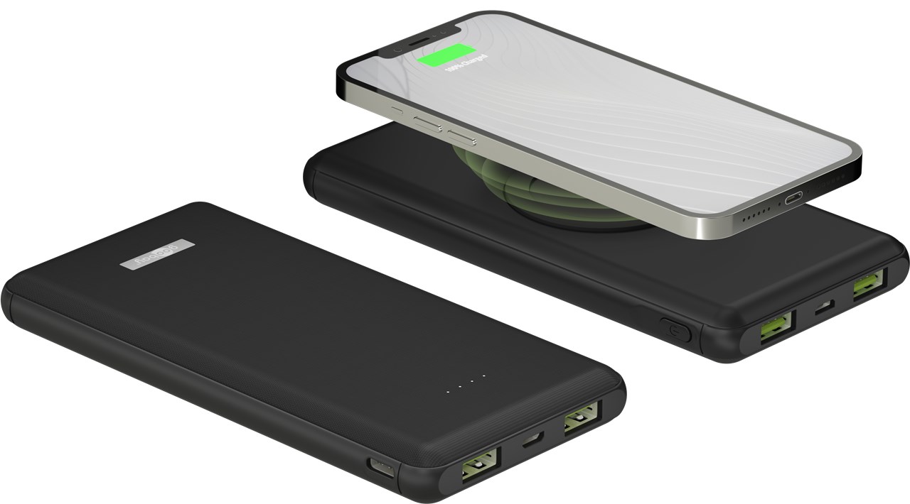 Tehnologie de încărcare rapidă la îndemână, care nu necesită cablu: pur și simplu plasați smartphone-ul pe powerbank și încărcați-l inductiv.