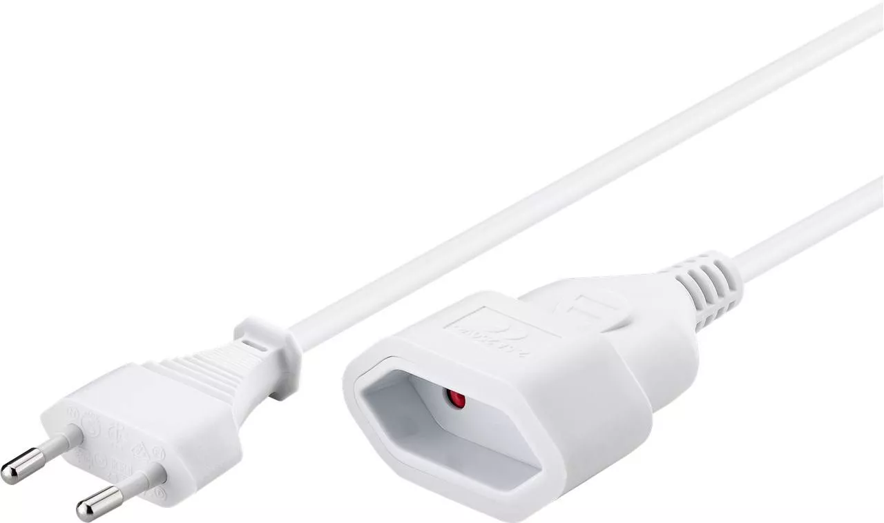 Cablu alb prelungitor de alimentare pentru 220V, 2m alb, conector Euro tata la Euro mama