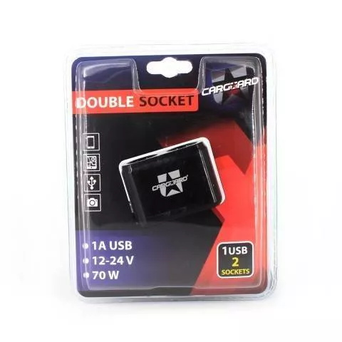 Priza dubla pentru bricheta auto cu cablu +USB 1A Carguard