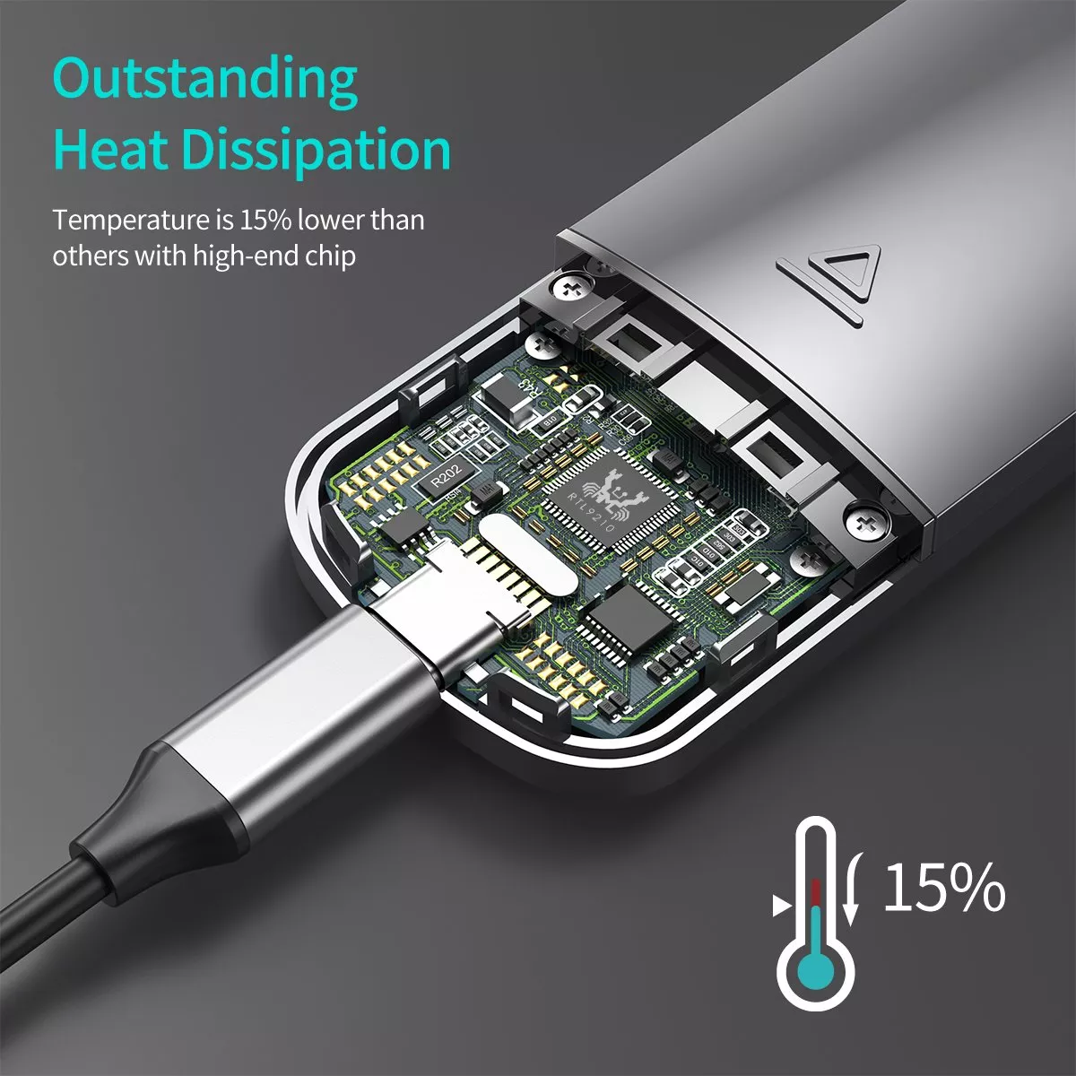 Un cip inteligent high-end incorporat, face ca temperatura incintei sa fie cu 15% mai scazuta decat altele. Și datorită gestionării excelente a energiei, carcasa SSD poate porni modul de repaus automat după 3 minute de inactivitate, care este conductiv pentru a prelungi durata de viață a șoferului tău.