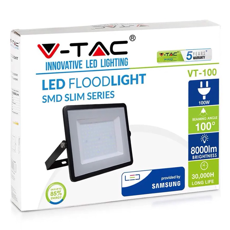 Reflector LED SMD 100W 8000lm 6400K IP65 negru cu cip SAMSUNG V-Tac SKU-414