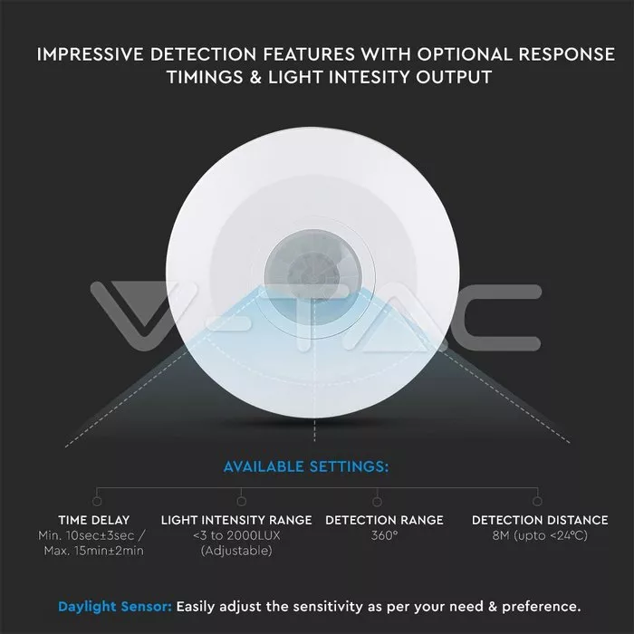 Senzor miscare cu montaj pe tavan 360 grade alb V-TAC.