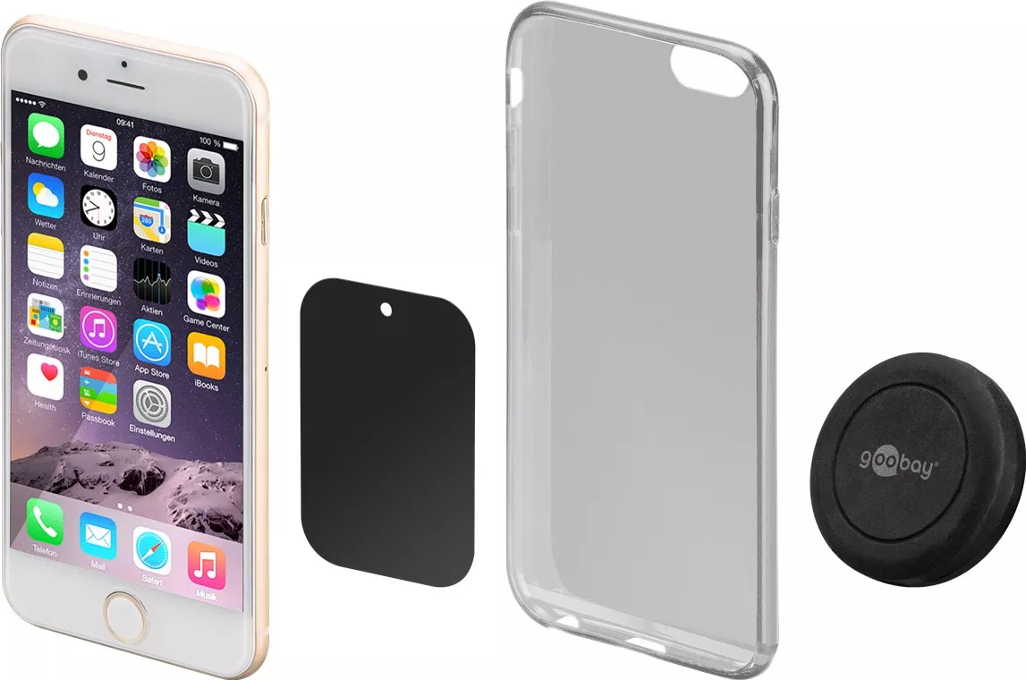 inclus în livrare: suport magnetic cu tampon adeziv și două plăci metalice, potrivit pentru multe dispozitive.