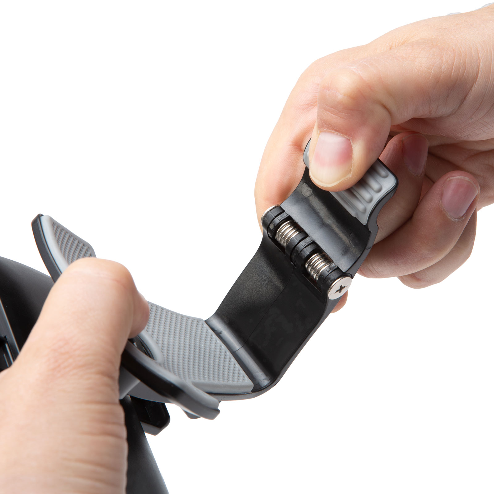 Compatibil cu orice mașină, acest suport de telefon puternic în formă de pensetă se atașează la jaluzeaua tabloului de bord din spatele volanului pentru a vă menține dispozitivul mobil la vedere. Avantajul său este că nu trebuie fixat pe parbriz cu o ventuză și nu împiedică circulația liberă a aerului în grilele de ventilație. Atunci când utilizați mai multe mașini, acesta poate fi mutat într-o altă mașină dintr-o singură mișcare, arcul cu forță de tensiune ridicată menține suportul stabil în toate condițiile.
