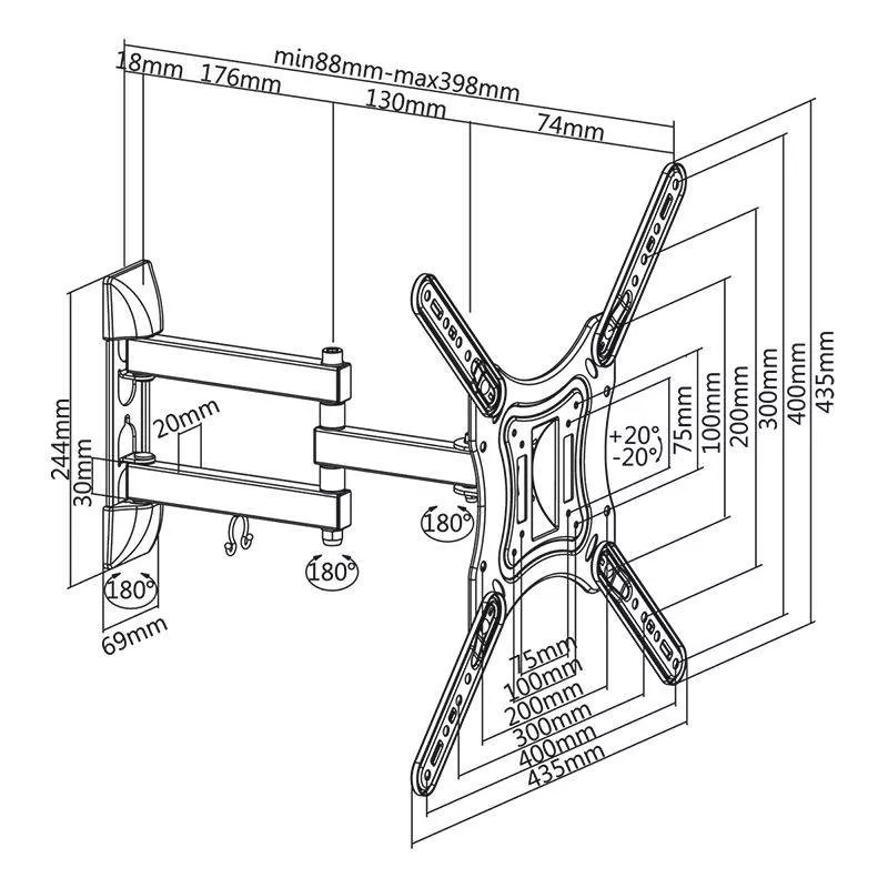 STANDARD VESA 75×75, 100×100, 200×100, 200×200, 400×400 max.