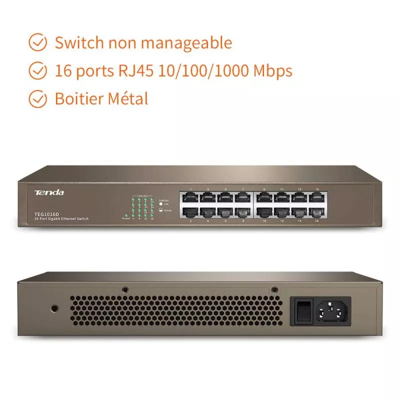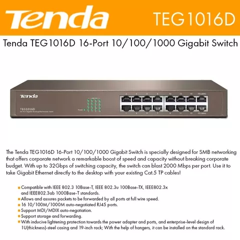 Switch Tenda TEG1016D, 16 porturi, Gigabit, desktop/montabil in rack.