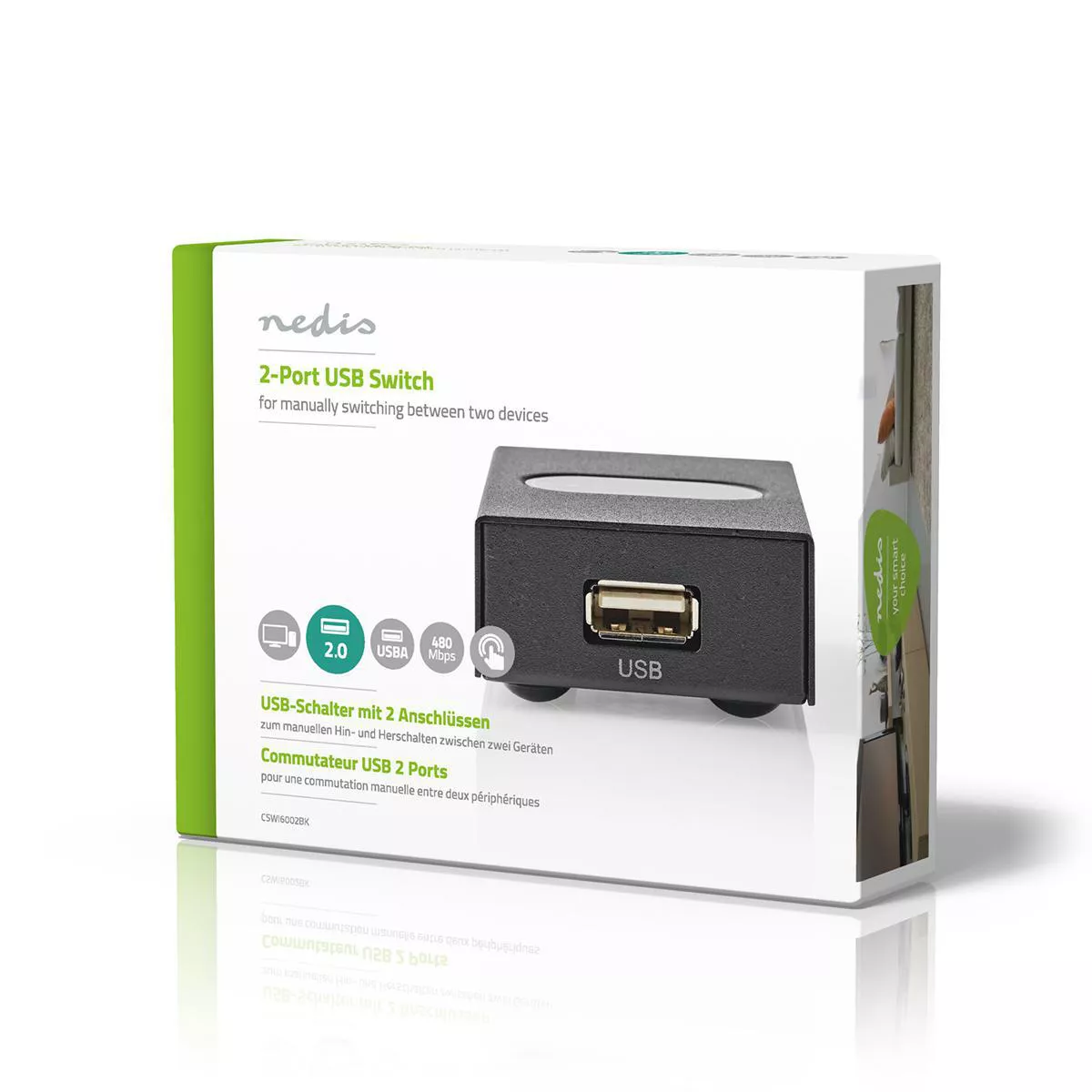 Switch USB 2 porturi negru Nedis.