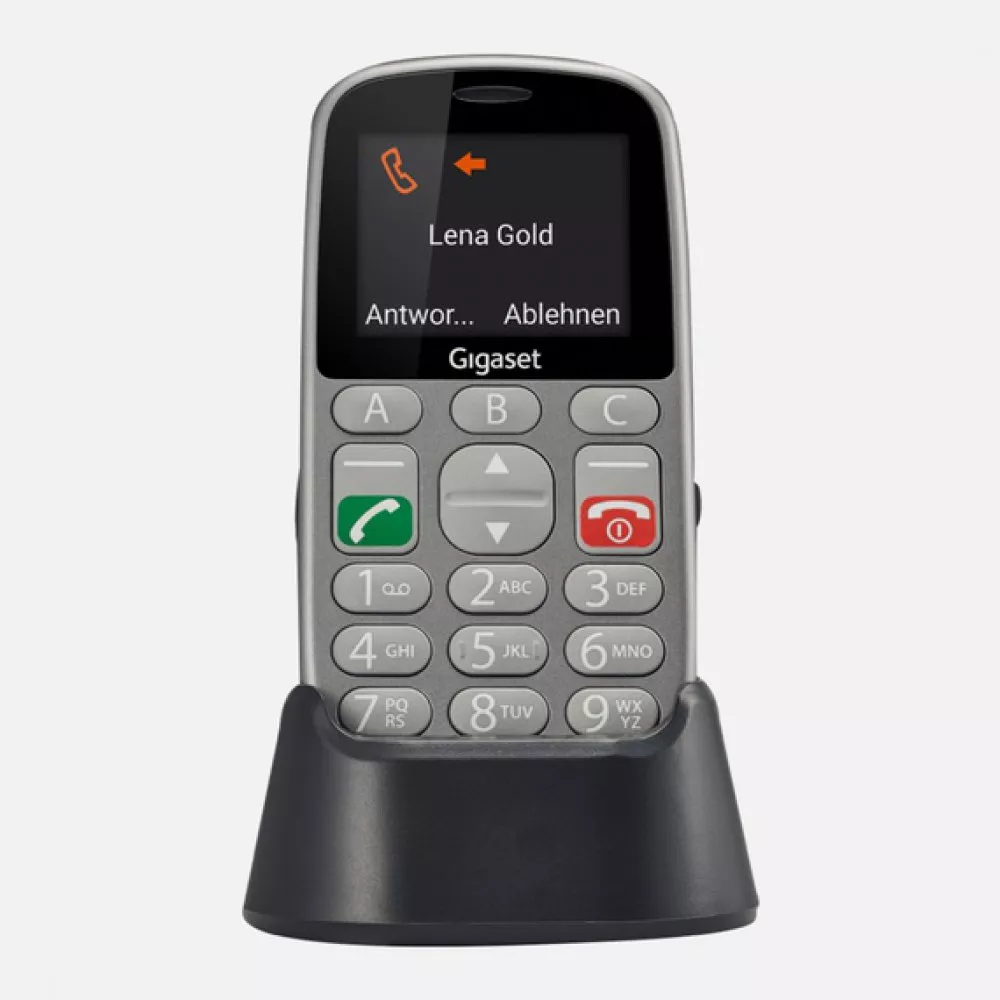 Telefon mobil Gigaset GL390 cu butoane mari argintiu.